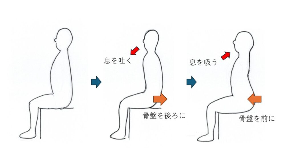 3. 息を吸いながら、骨盤を前に傾けて背中を軽く反らす