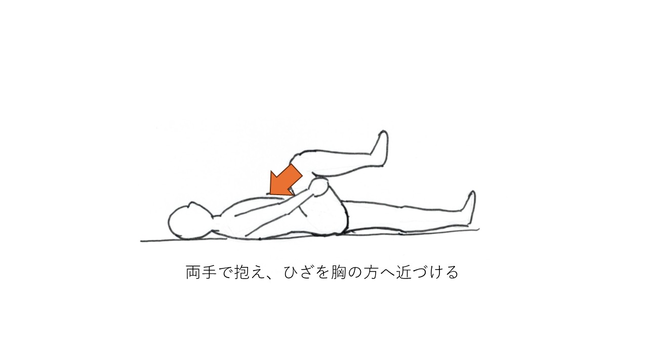 1. 仰向けに寝て、片方の膝を胸の方へ近づける